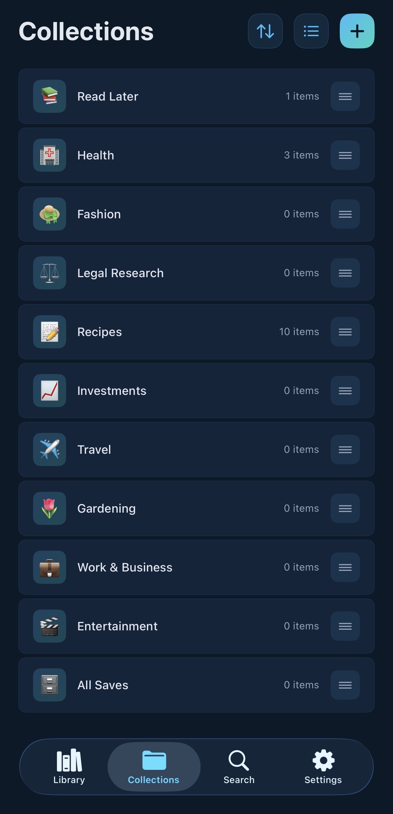 - Collections to organize your saves