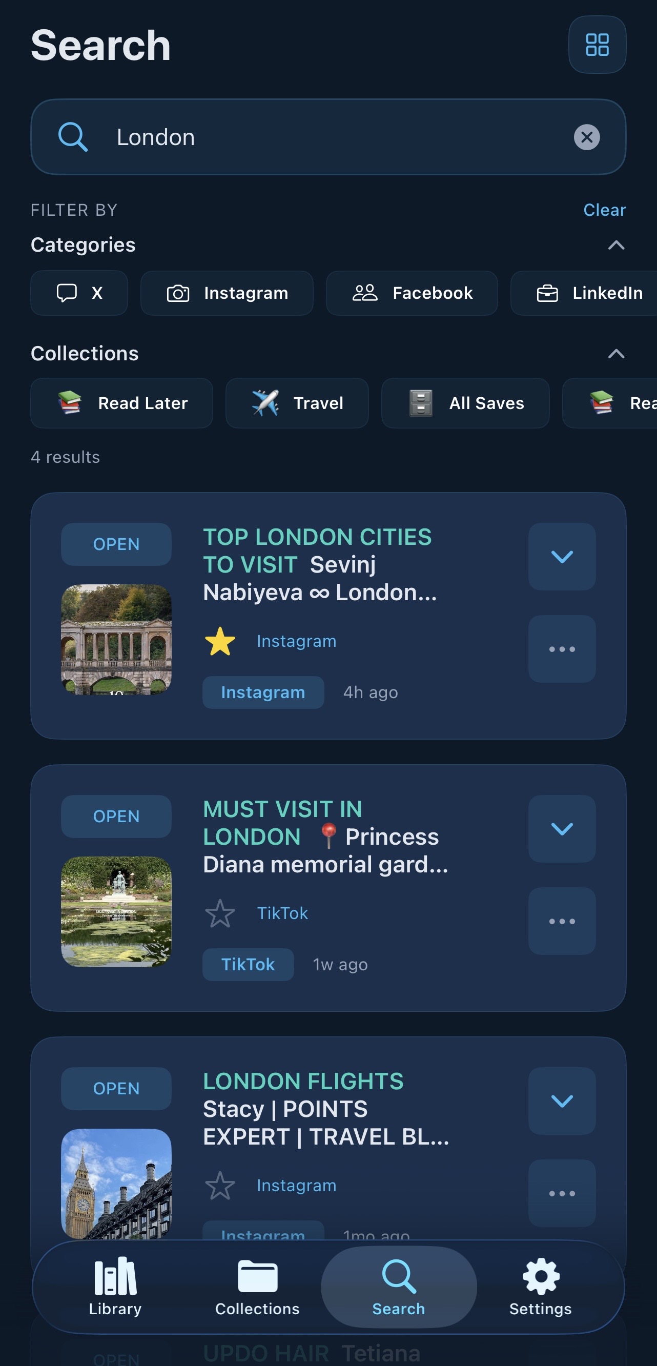 Create collections to group your snags any way you like — a trip you're planning, a shopping list, a research project, a recipe folder. Share collections with anyone.